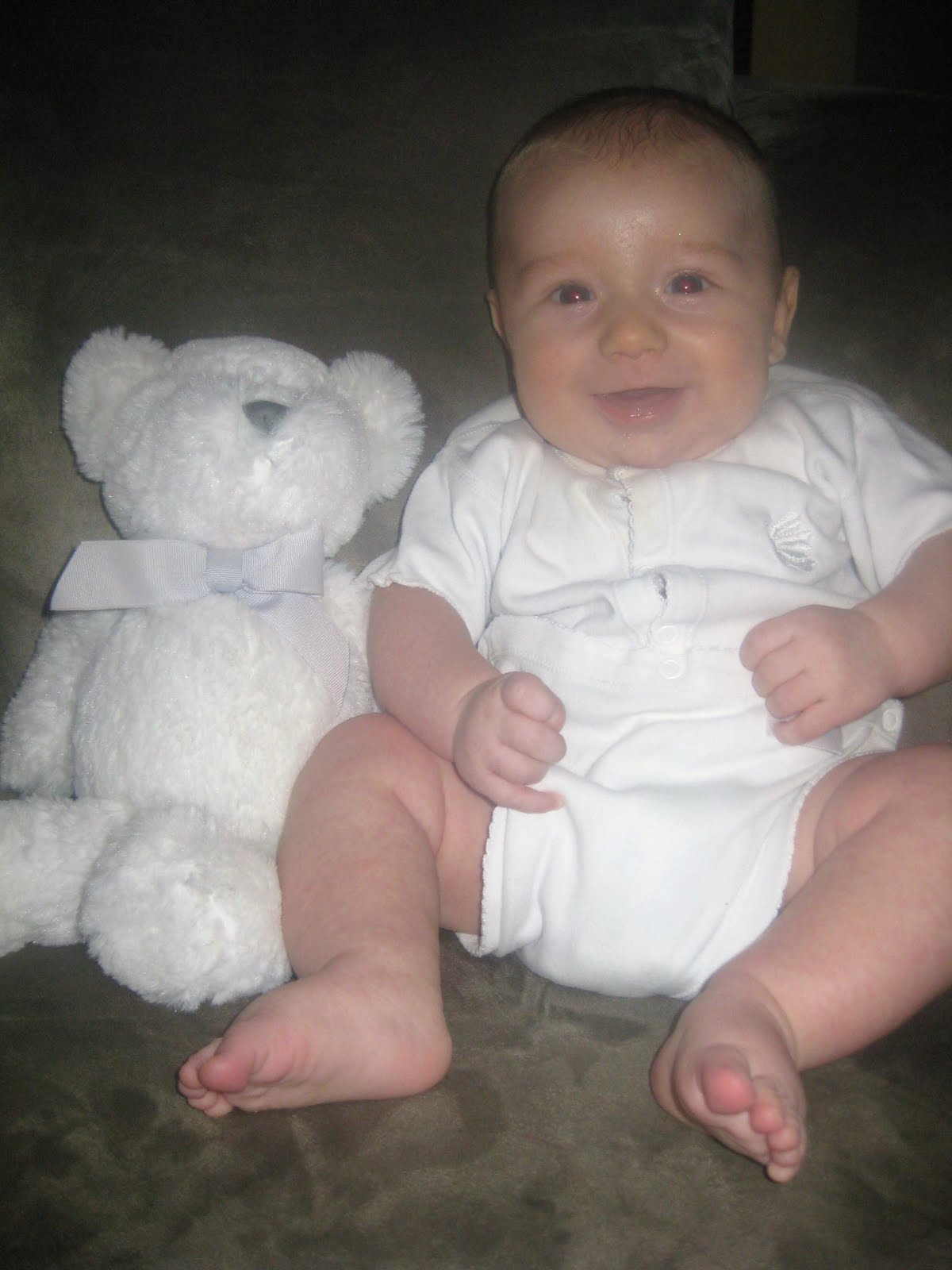 Well I know every mother thinks it but seriously I think Emmitt is the cutest baby ever (well at least in the top 4)! I need a new camera or some picture taking lessons or something because these pics don't do him justice. Here's the standard pose: